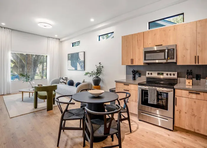 ( ex. Smart Amenities & Modern Charm – Houston Studio! )